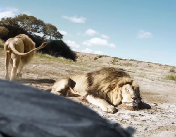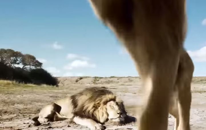 Like in a movie, a lion is seen attacking two hunters who 'supposedly' killed his friend.
