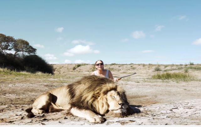 This video shot reportedly in South Africa show two hunters posing with their kill, a lion, before another lion is see following and jumping on them.