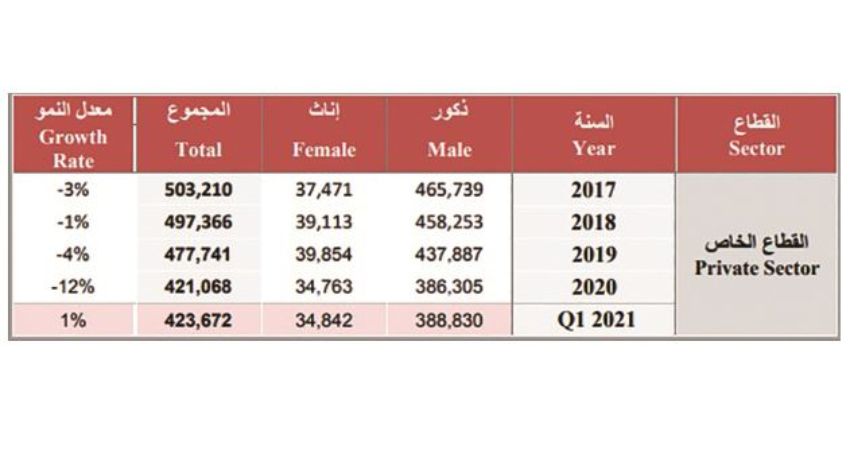 The Q1 2021 report showed a 1pc increase in the number of expats (423,672) in the private sector contributing to the SIO, despite the numbers falling since 2017.