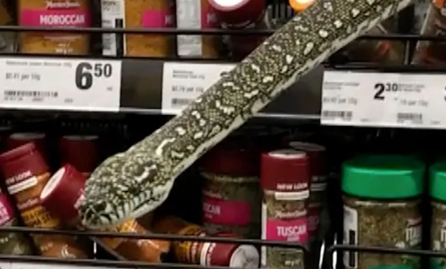 A 10-foot-long python surprised a woman shopping for spices at a grocery chain in Sydney, Australia.