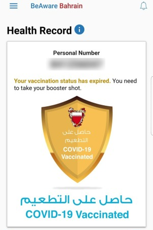 The Health Ministry assured that it will turn green again after taking the third dose, calling on eligible people to register via healthalert.gov.bh, or BeAware.