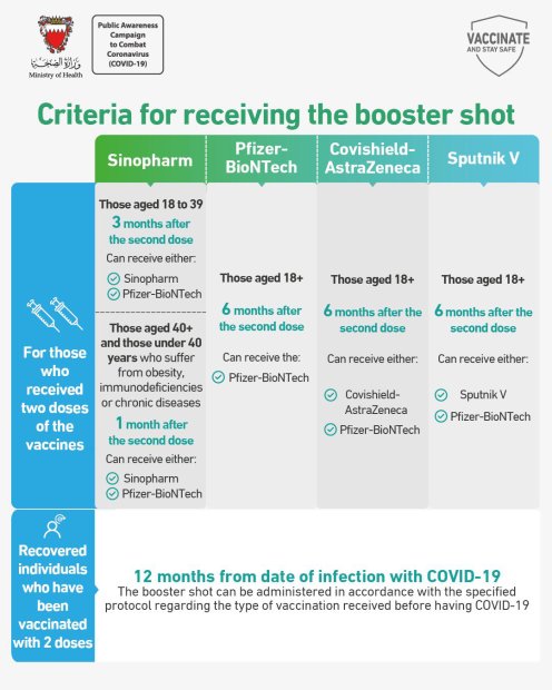 The Health Ministry on Friday released an infographic detailing the eligibility for booster shots. The country offers free vaccinations and booster shots for its people who can choose from Sinopharm, Pfizer-BioNTech, AstraZeneca Covishield and Sputnik V.