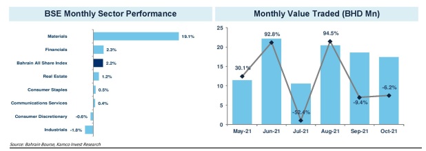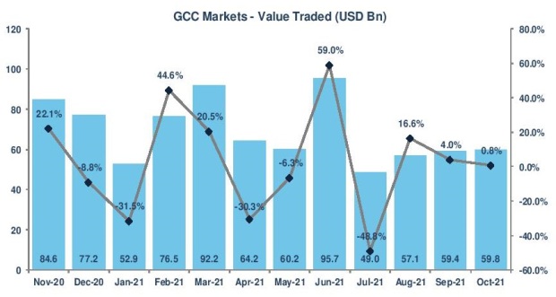 As for the GCC region, equity markets witnessed gains for the 12th consecutive month, with the MSCI GCC index rising 3.1pc in October 2021 supported by consistent gains since the start of the month that were partially offset by a 1.6pc decline in the last week.